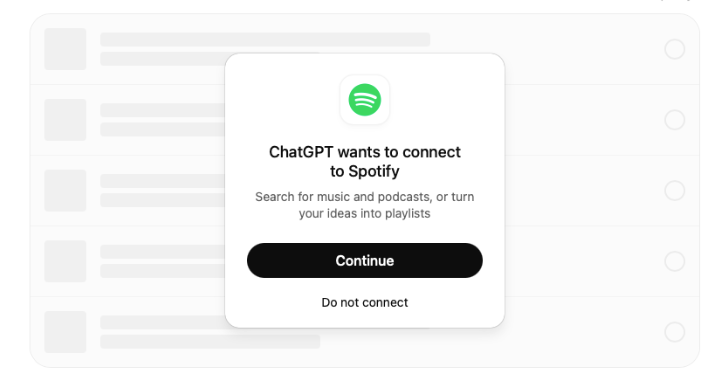 2) The first time you mention Spotify, ChatGPT will show a connection prompt.