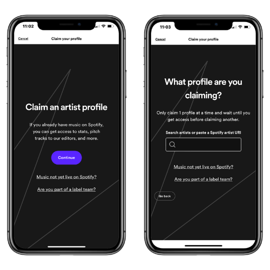 Spotify will then ask you to identify yourself as an artist, manager, or label team member, and then you can claim your Spotify artist profile.