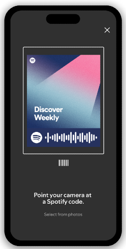 Les fans ouvrent l'application Spotify , appuient sur la barre de recherche, puis sur l'icône de l'appareil photo dans le coin supérieur droit. De là, ils peuvent pointer leur appareil photo vers votre code pour le scanner.