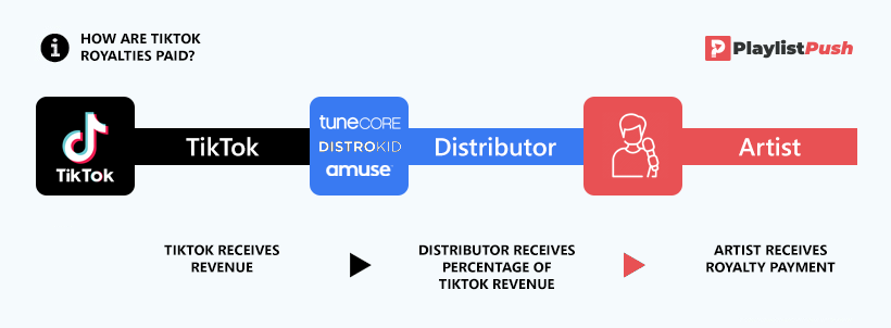 La citation ci-dessous de TuneCore fournit plus de détails sur la façon dont cela fonctionne. Chaque distributeur aura un "accord général" différent avec TikTok, mais vous pouvez vous attendre à ce que le modèle de base que TuneCore partage ici soit le même pour votre distributeur.